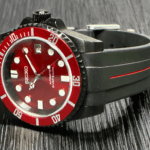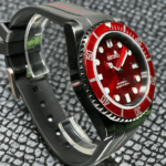 Strap: 20mm black FKM rubber with red stripe
