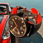 Strap: Carbon Fiber red and balck strap with butterfly clasp